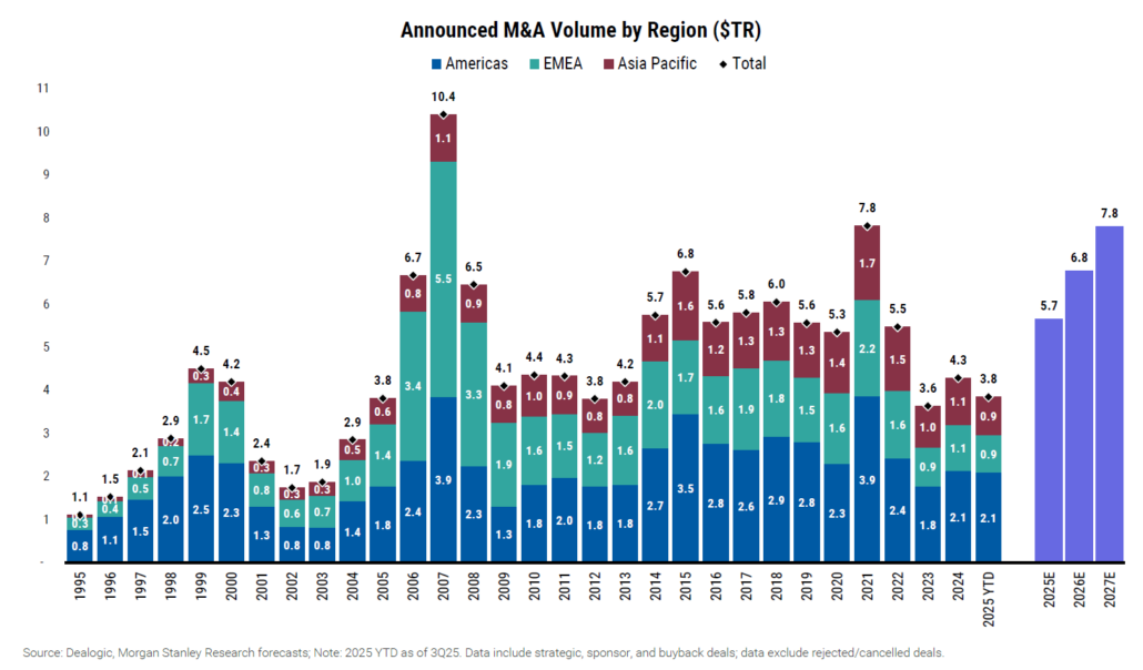 Distintas fuentes apuntan en la misma dirección: Dealogic y Mergermarket reportan aceleración de megadeals en 2025 y un 3T particularmente dinámico; la consultoría estratégica (PwC, McKinsey) habla de estabilidad/selección pero con “momentum” mejor de cara a 2026; y plataformas de ejecución ven pipelines más profundos en América y EMEA, incluso con Asia-Pacífico normalizando tras dos años débiles.