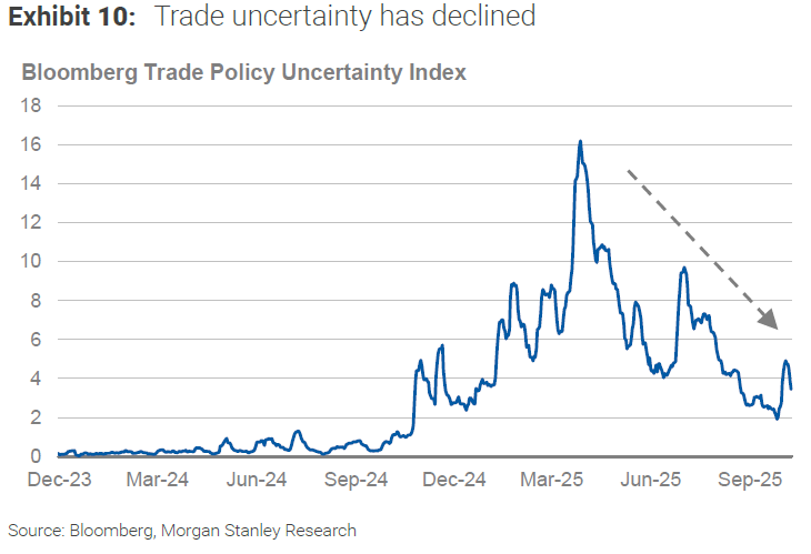 Incertidumbre a la baja. Tras el “shock” 2020–2024 (COVID, inflación, subidas de tipos, elecciones), el marco de política se estabiliza. La inflación se modera frente a los picos, los bancos centrales han iniciado o preparan ciclos de recortes y el mercado ha internalizado el nuevo nivel de tarifas y reglas comerciales. Para los equipos directivos, el “no saber” pesa menos que antes.